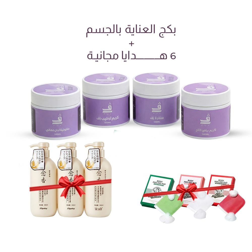 بكج العناية بالجسم – ترطيب، تقشير وتفتيح متكامل + 6 هدايا مجانية